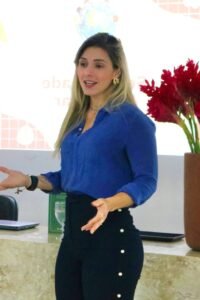 Manoela Guimarães (CRP 03/ 20846), psicóloga especialista em autismo e deficiência intelectual. Com experiência em assessoria familiar, intervenção precoce e terapia comportamental, ela é Terapeuta Denver pelo Instituto Mind e possui capacitação em ensino incidental e terapia analítico-comportamental infantil. Também é habilitada para treinamento de cães de serviço assistidos. Atualmente, atua como coordenadora terapêutica do Gira Mundo Espaço Lúdico.